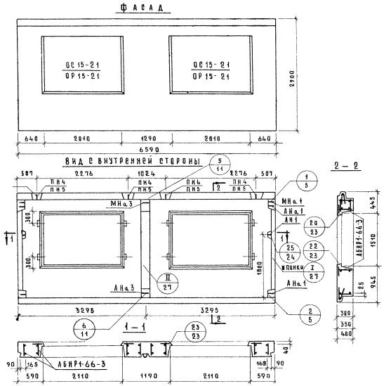 НР1-66.29.4-3   Наружная стеновая панель рядовая по Серии 1.132-1.